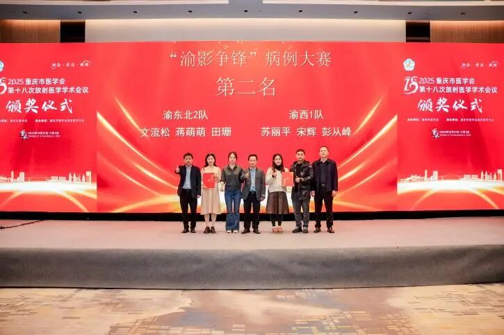 在“渝影争锋”病例大赛中,由我院放射科文流松担任队长,联合开州区人民医院蒋萌萌和忠县人民医院田珊组成的渝东北2队,凭借扎实的专业功底、严谨的分析逻辑和出色的团队协作,经过“厉兵秣马”有问必答、“群雄逐鹿”分秒必争、“问鼎中原”病例解析三个环节的激烈角逐,全面展现了参赛选手的诊疗思维与实践能力和高水平的放射医学诊断能力,最终荣获第二名。