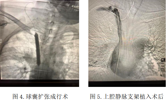 经与患者及家属沟通并取得同意后,在黄晓慧主任带领下,我科全昌系主治医师、幸金鑫主治医师、肖浪护师于2025年11月14日成功为患者实施上腔静脉造影+支架植入术+球囊扩张成形术,术中造影见上腔静脉中下段重度狭窄,随后植入巴德覆膜支架1枚,紧接着于支架内行球囊扩张成形术,手术历时约1小时,术中患者未诉特殊不适,术后第二天患者颜面部、颈部肿胀明显消退,颈静脉怒张及胸壁静脉曲张明显减轻,术后24小时拆除绷带纱布患者可下床活动自如。