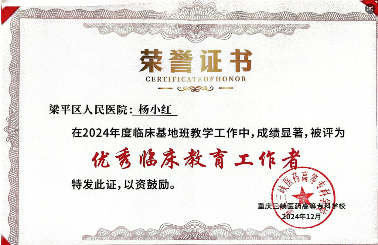 重庆三峡医药高等专科学校2024年度优秀临床教育管理者发布时间:2024-12-27