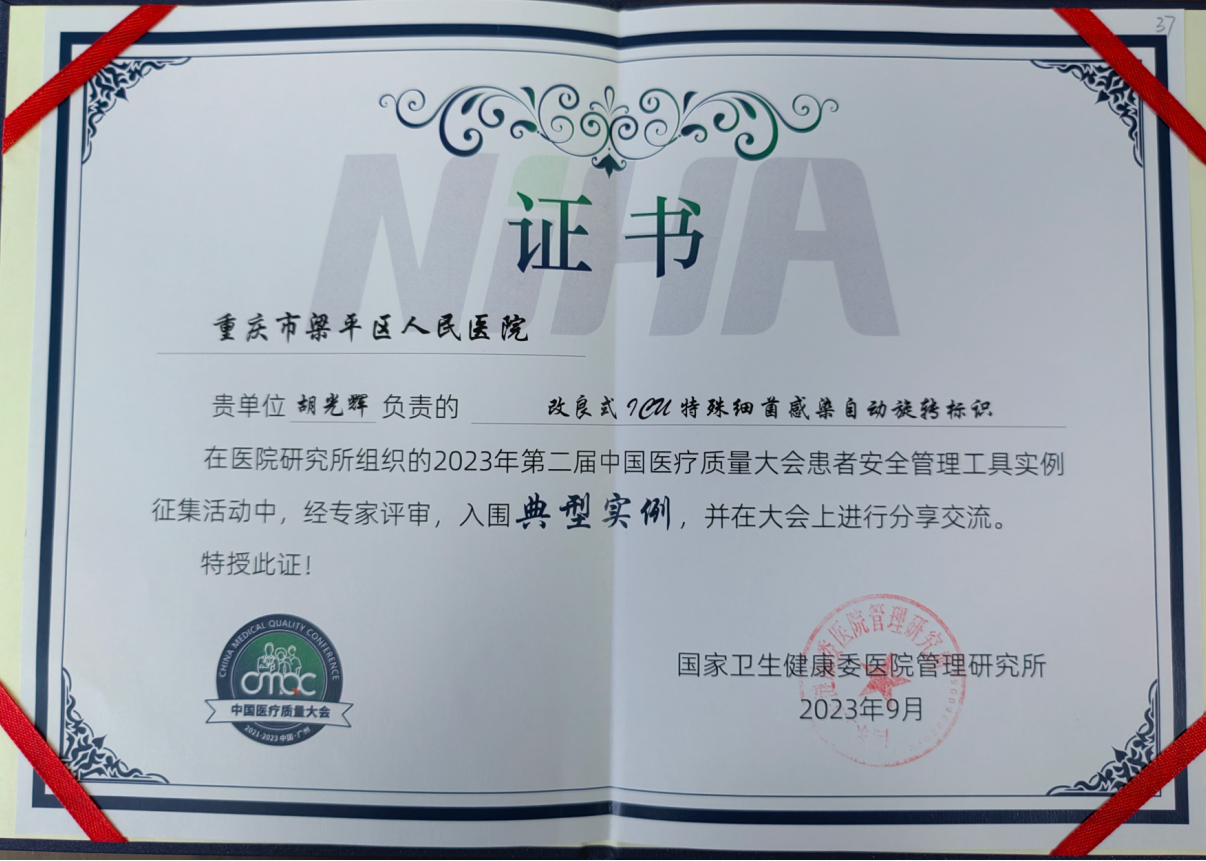 《改良式ICU特殊细菌感染自动旋转标识》入围2023年第二届中国医疗质量大会安全管理工具实力征集活动典型案例发布时间:2023-09-27