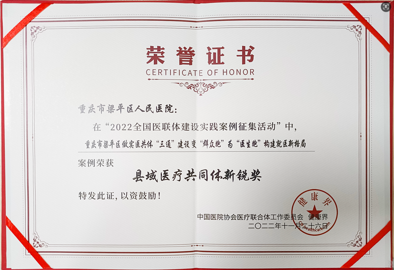 重庆市梁平区做实医共体“三通”建设变“群众跑”为“医生跑”构建就医新格局案例荣获县域医疗共同体新锐奖发布时间:2022-11-26