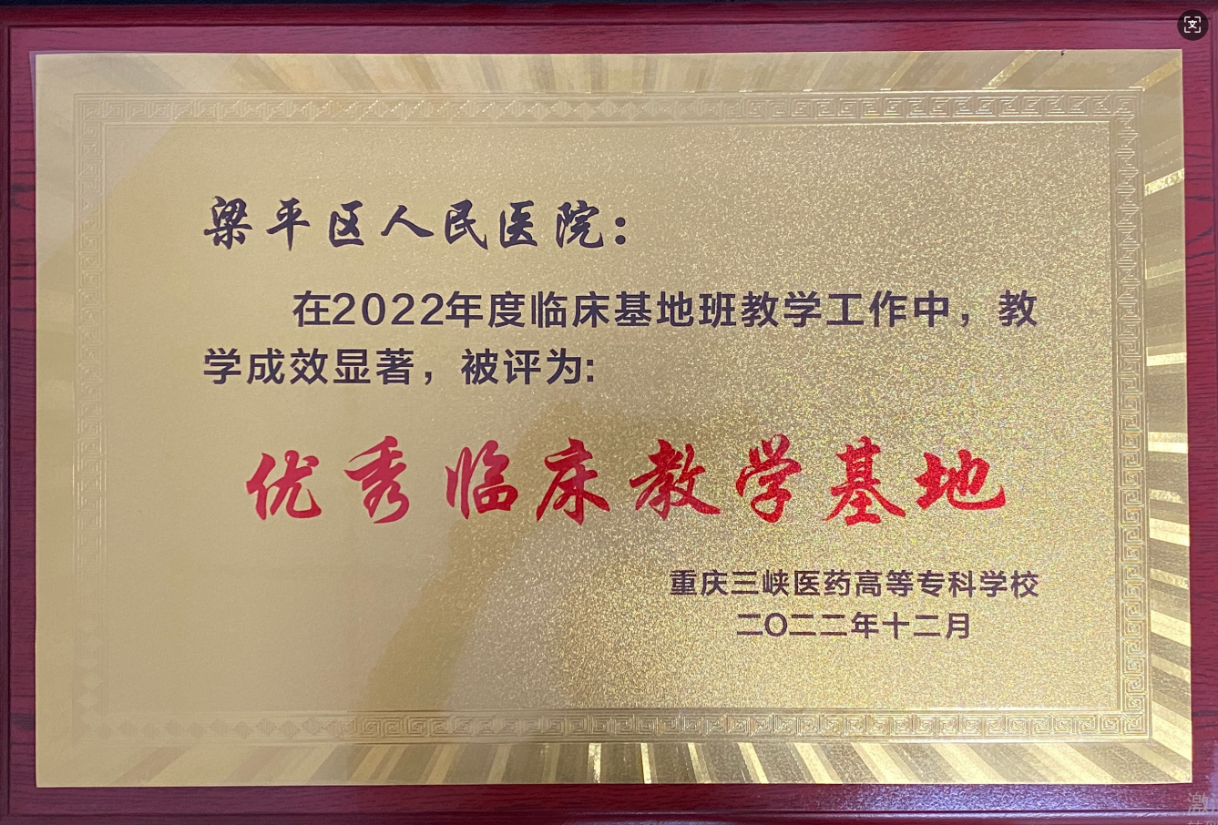重庆三峡医药高等专科学校2022年度优秀临床教学基地发布时间:2022-12-25