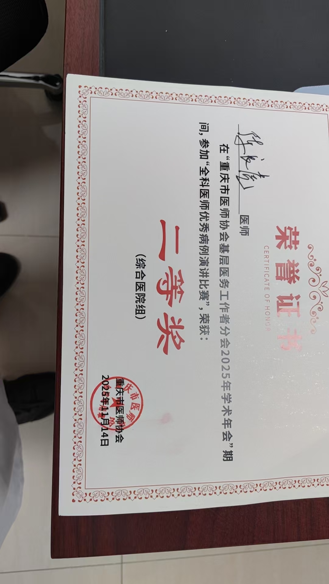 重庆市医师协会基层医务工作者分会2025年学术年会全科医师优秀病例演讲比赛二等奖发布时间:2025-11-14