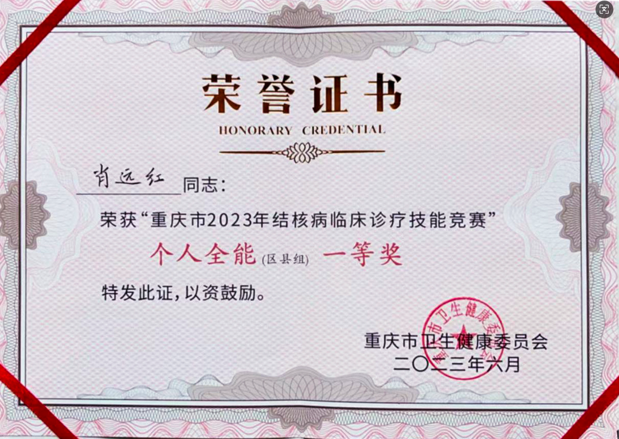 重庆市2023年结核病临床诊疗技能竞赛个人全能一等奖区县组发布时间:2023-06-27