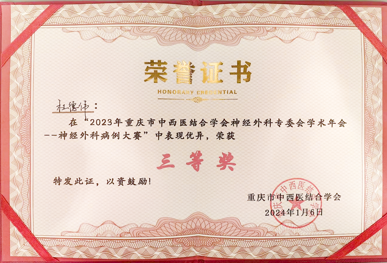 2023年重庆市中西医结合学会神经外科专委会学术年会——神经外科病例大赛三等奖发布时间:2024-01-06