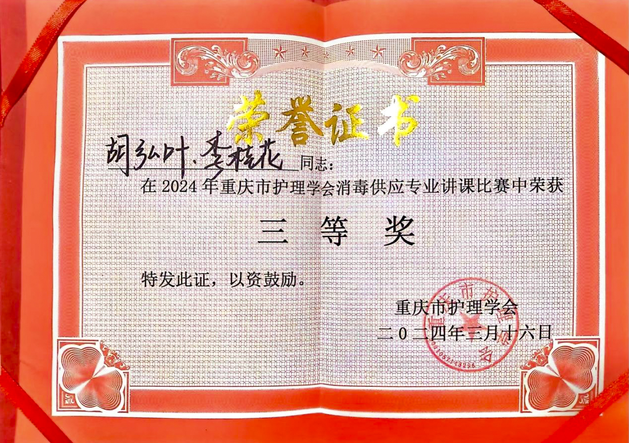 重庆市护理学会消毒供应专业讲课比赛三等奖发布时间:2024-03-16