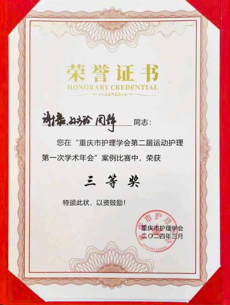 重庆市护理学会第二届运动护理第一次学术年会案例比赛三等奖发布时间:2024-03-26