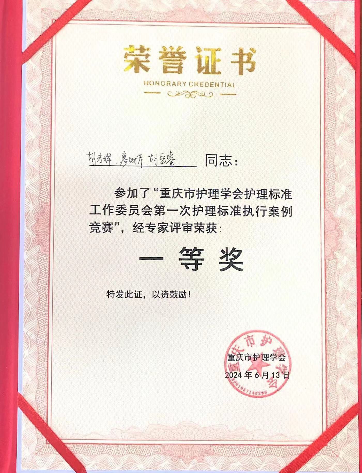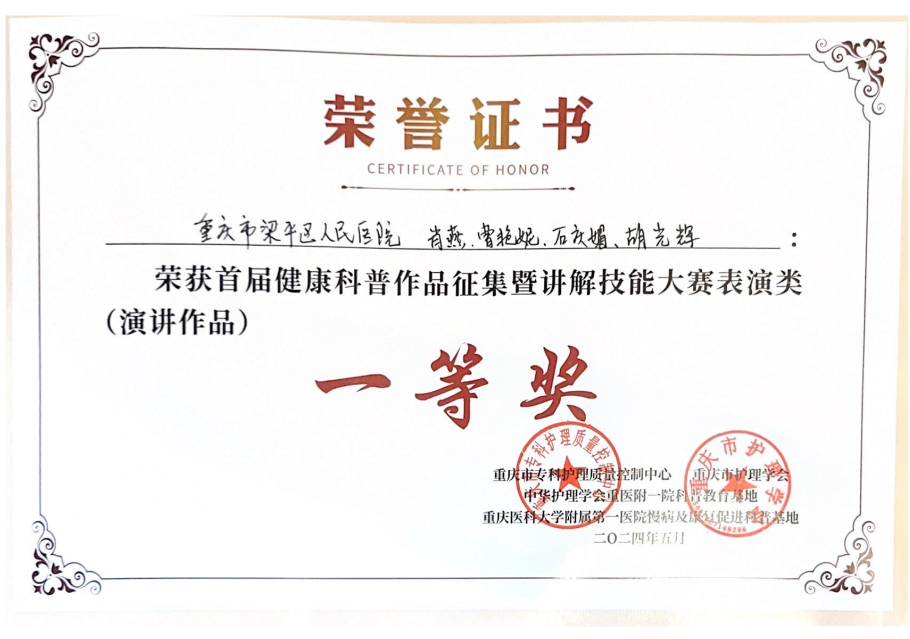 重庆市护理学会护理标准工作委员会第一次护理标准执行案例竞赛一等奖发布时间:2024-06-13