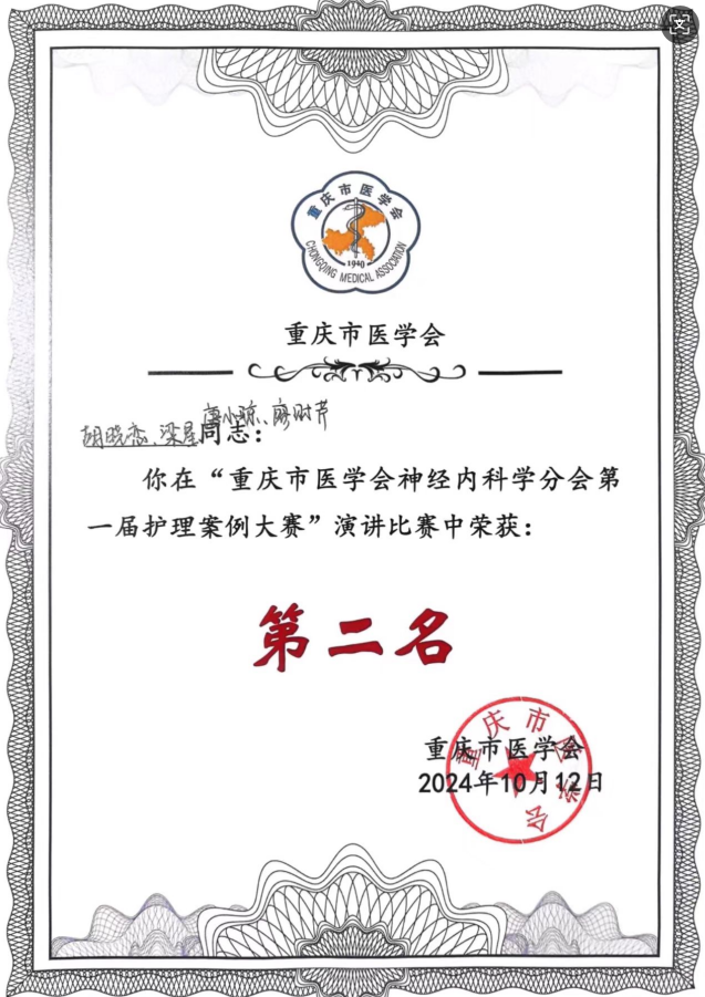 重庆市医学会神经内科学分会第一届护理案例演讲比赛第二名发布时间:2024-10-12