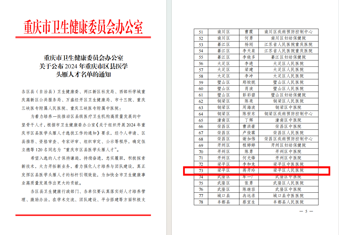 2024年重庆市区县医学头雁人才发布时间:2024-09-05