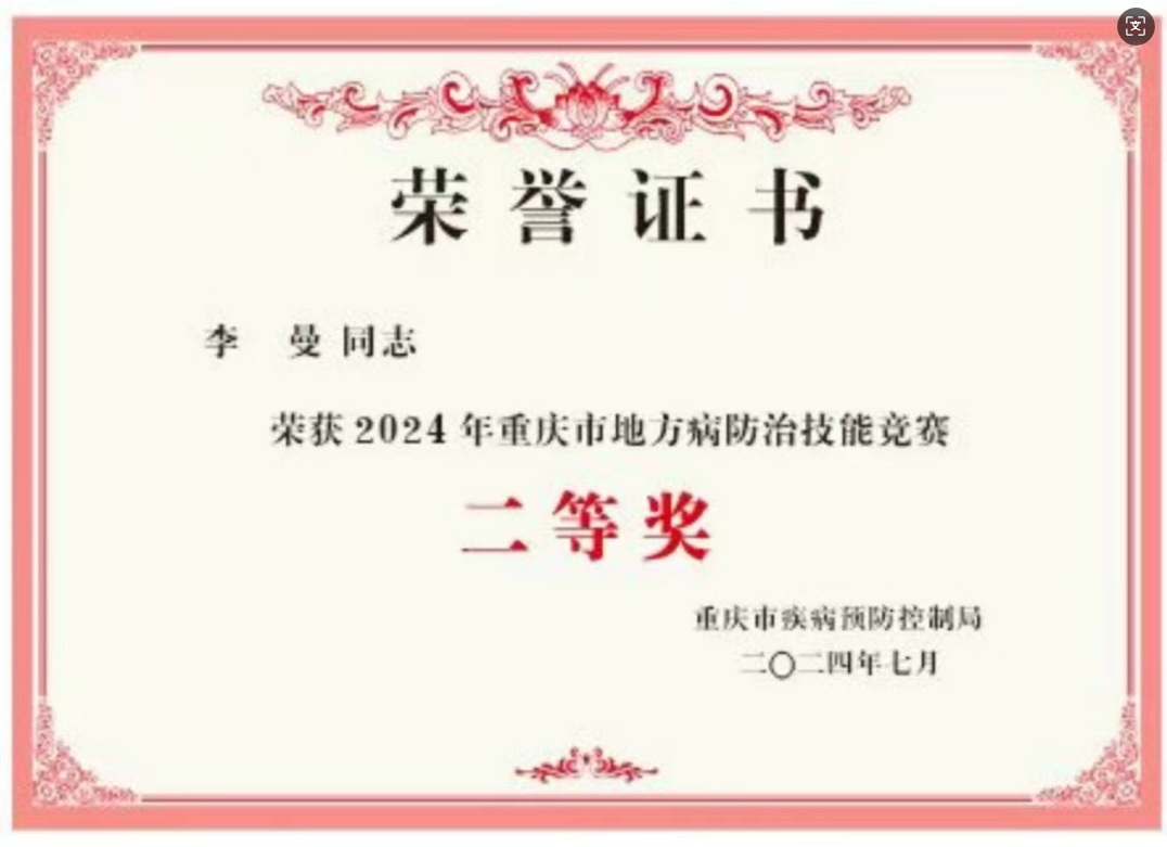 2024年重庆市地方病防治技能竞赛二等奖发布时间:2024-07-26