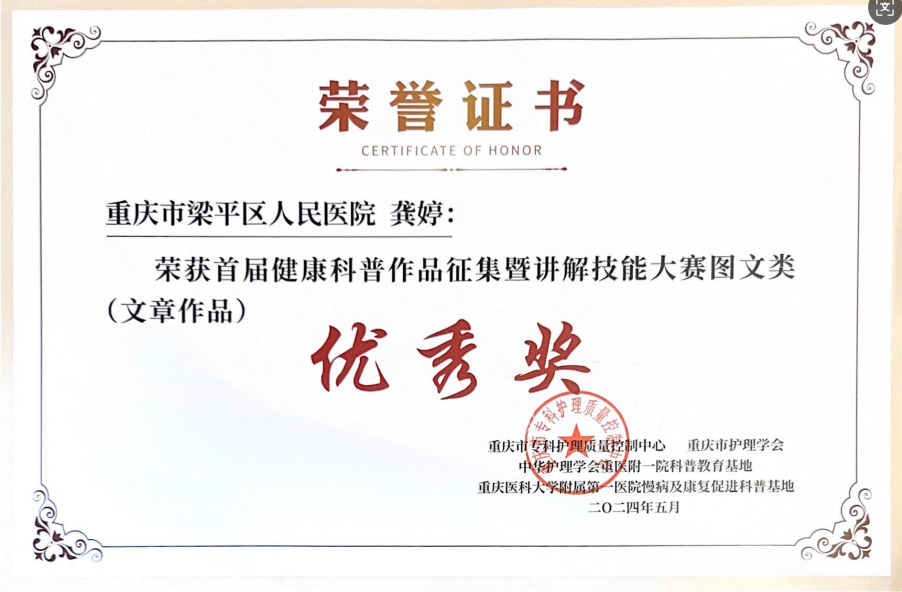 荣获首届健康科普作品征集暨讲解技能大赛图文类文章作品 优秀奖发布时间:2024-05-26