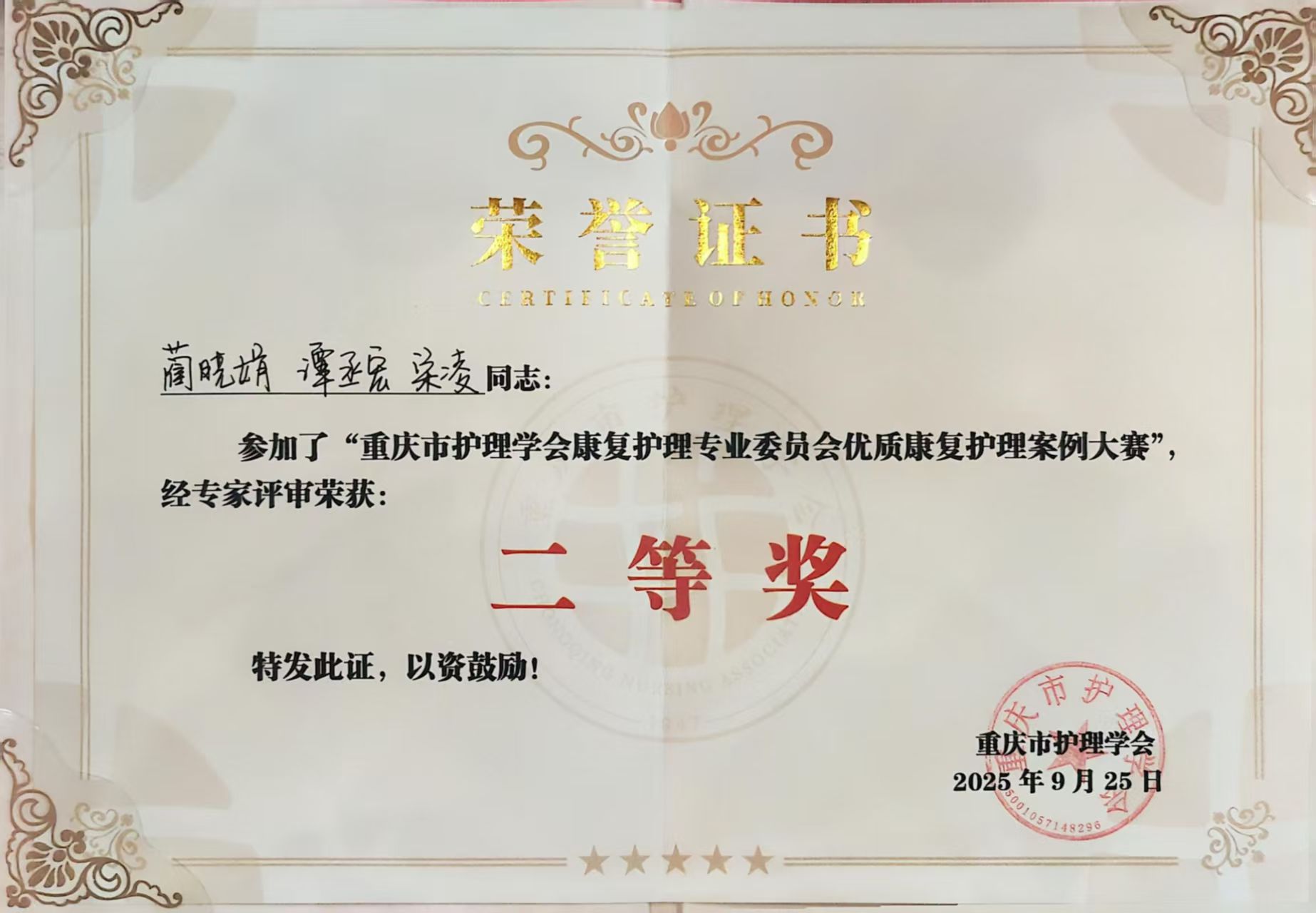 重庆市护理学会康复护理专业委员会优质康复护理案例大赛二等奖发布时间:2025-09-25