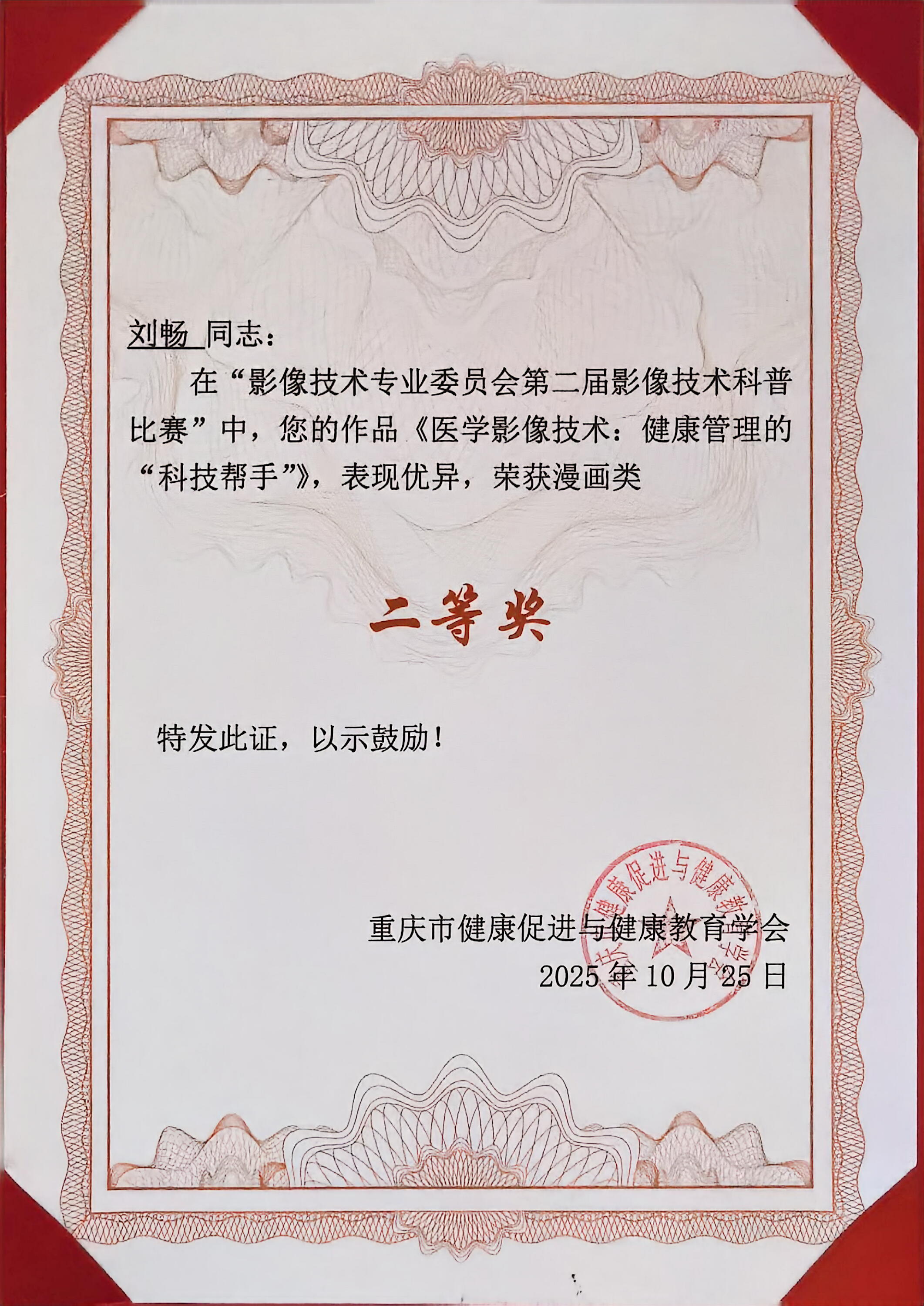 《医学影像技术:健康管理的‘科技帮手’》获重庆市健康促进与健康教育学会医学影像专业委员会第二届影像技术科..发布时间:2025-10-25