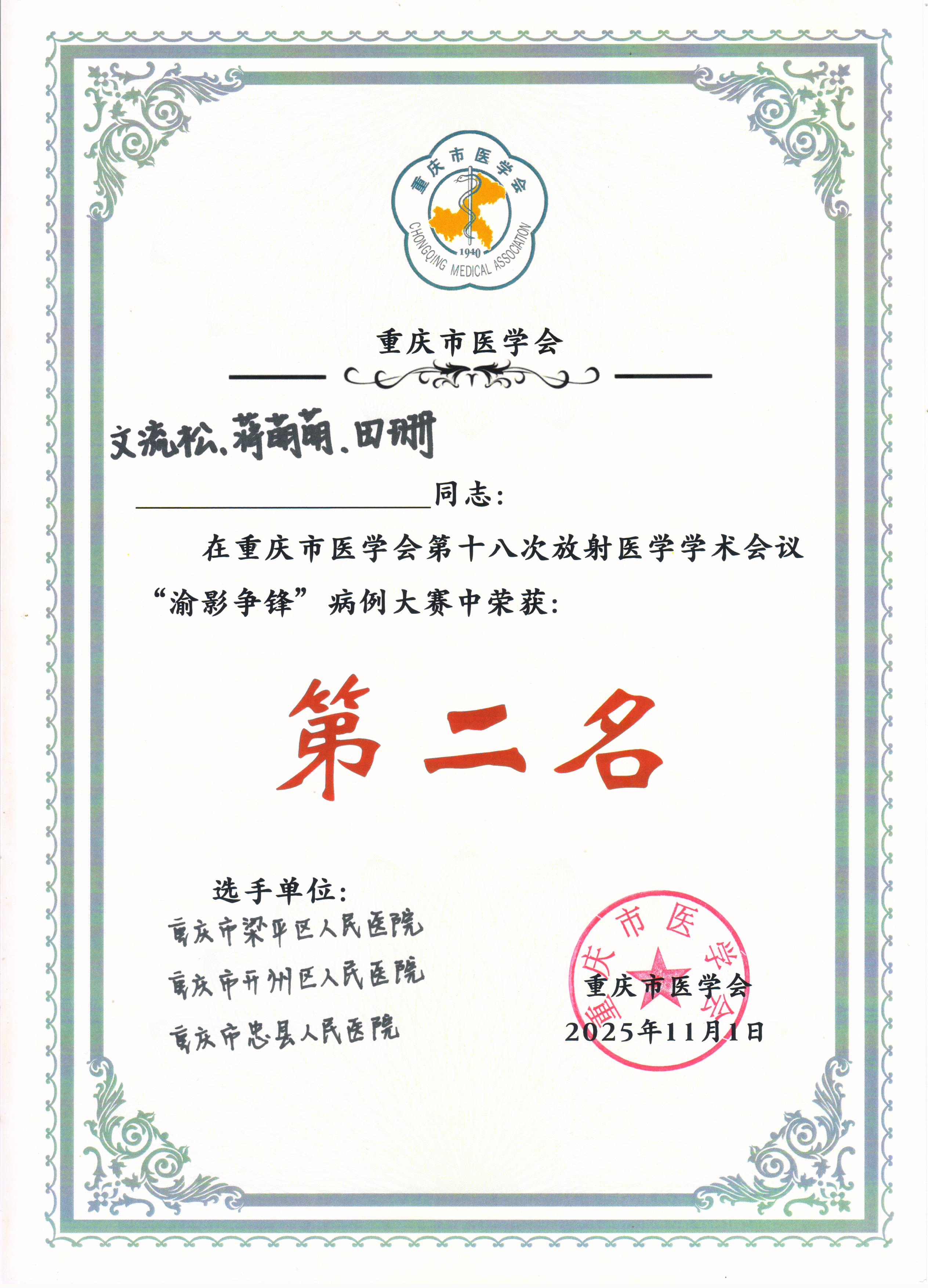 重庆市医学会第十八次放射医学学术会议“渝影争锋”病例大赛第二名发布时间:2025-11-01